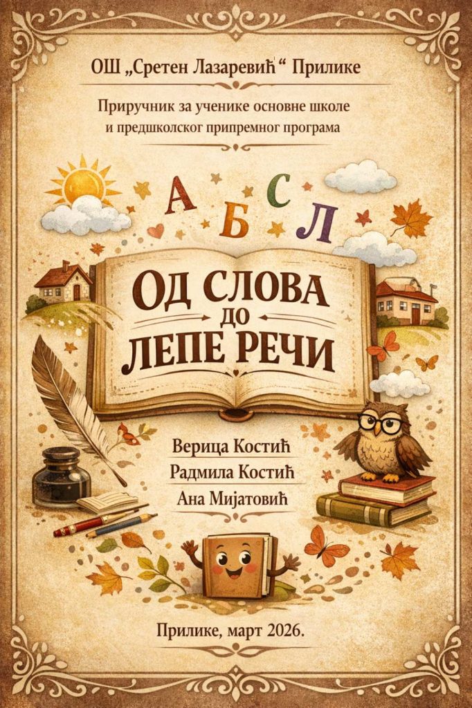 Верица Костић и Радмила Костић, наставници српског језика и књижевности, и Ана Мијатовић, логопед, приредиле су приручник за читање и изражајно казивање „Од слова до лепе речи“ за ученике наше школе. Приручник је намењен деци од предшколског узраста до осмог разреда и служи за унапређивање читања, разумевања прочитаног, рецитовања и развоја правилног и лепог говора.